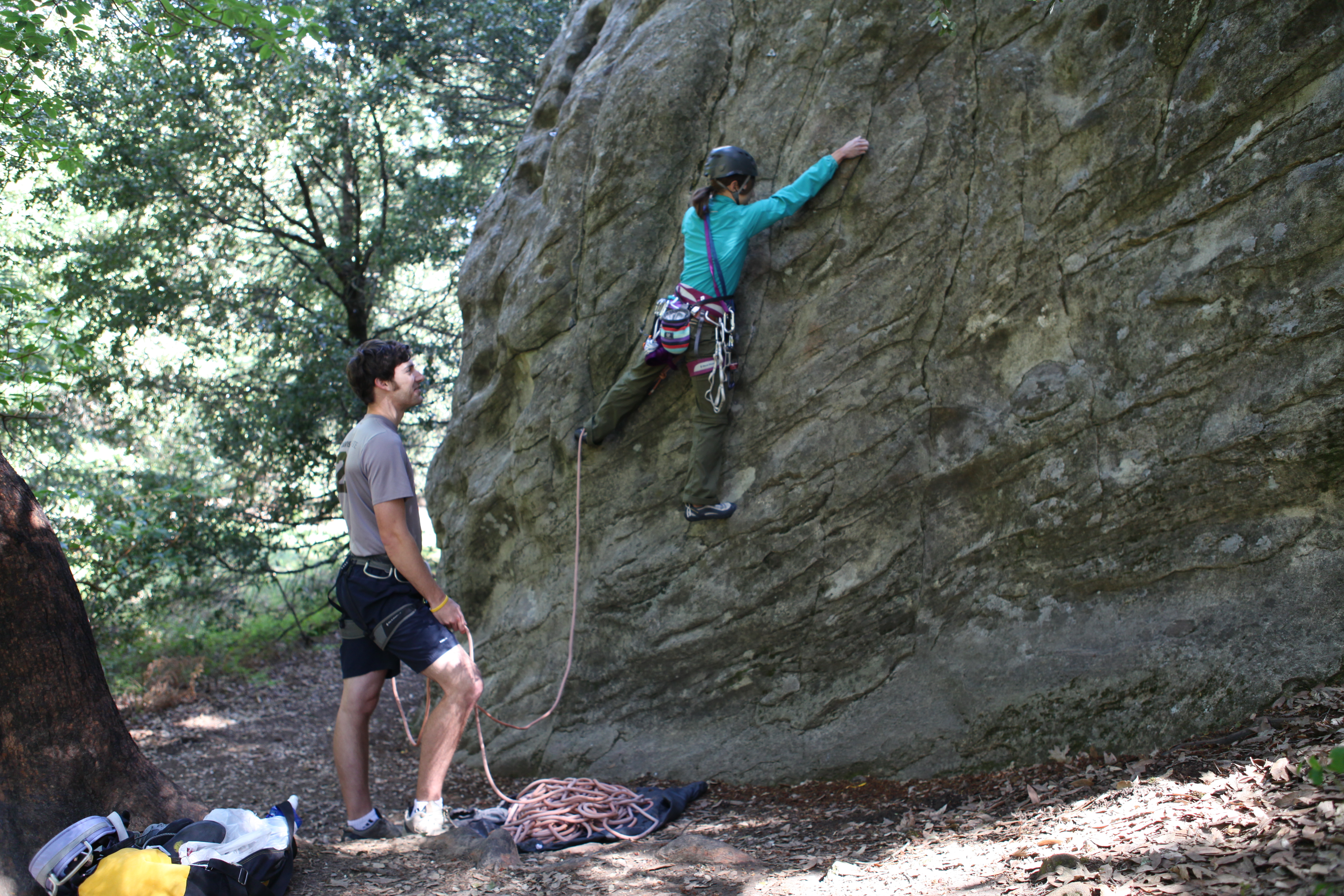 Here in San José my backyard crag would be Castle Rock State Park. As a state park, it’s gorgeous. It lies within the Santa Cruz Mountains that separates San José from Santa Cruz and is only a 30 minute drive away. It’s home to redwoods and some really nice hiking. It is connected to Big Basin State Park, California’s oldest state park, and if you wanted to you could hike from Castle Rock through Big Basin and to Waddell Beach on the Skyline to the Sea trail- a 31 mile trail you can backpack or just do it in a big one day push. I’ve never done it but I’ve done pieces of it and from what I’ve heard (and experienced) it’s not a particularly strenuous hike (not a lot of elevation gain), it’s just really long.