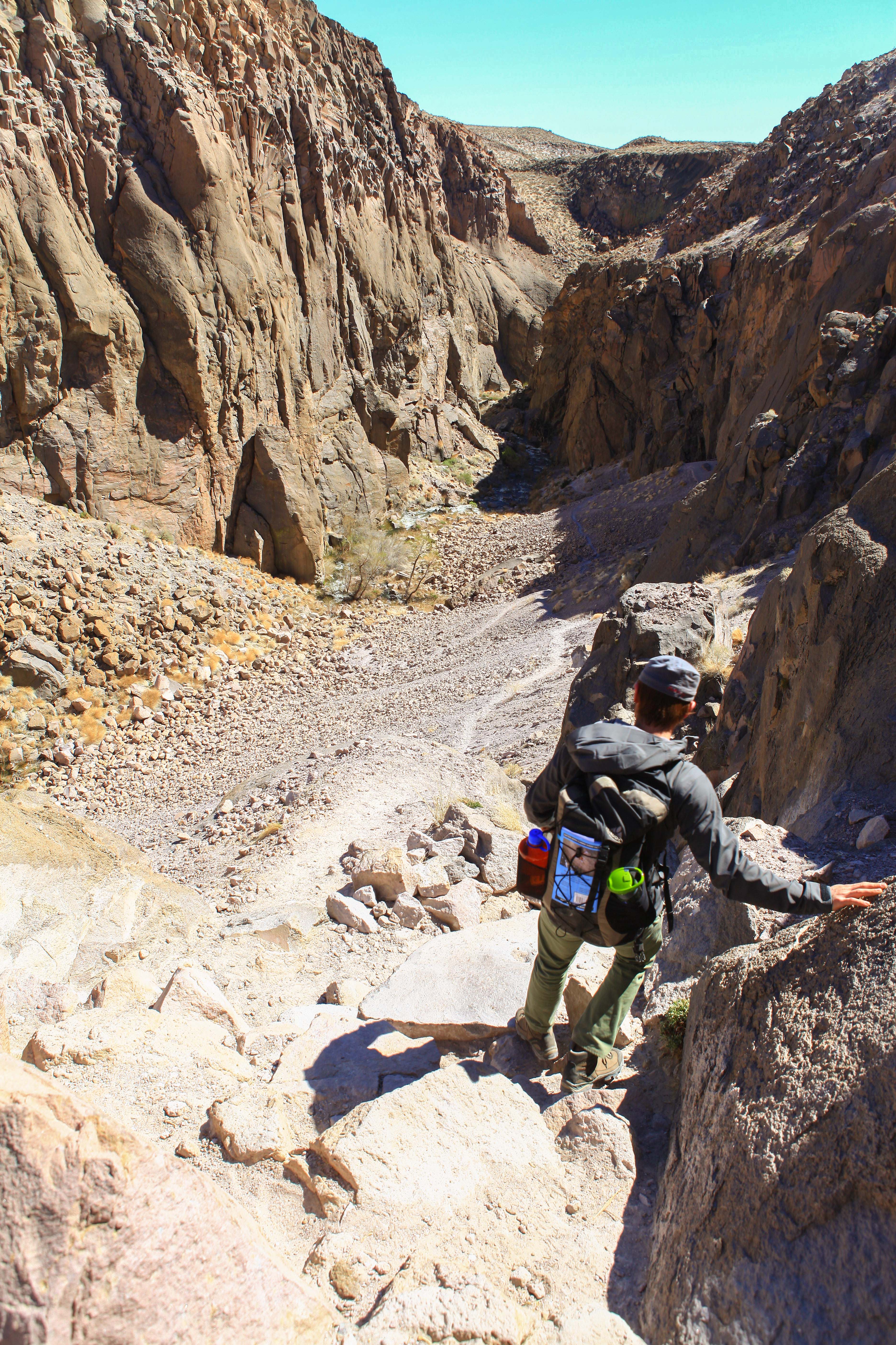 After passing through incredible Eastern Sierra vistas, with the white mountains to our east and the Sierras to our west, we found ourselves at the parking lot for the Northern gorge at around noon. The approach is kind of wild and fun. You have to do some 3rd class scrambling down a steep gully and you eventually make it onto a trail that cuts through the gorge. Everything looked so good but we held in our temptation to try whatever we saw first and went to the most famous wall of the Northern area, the “Gorgeous Towers.” We did..