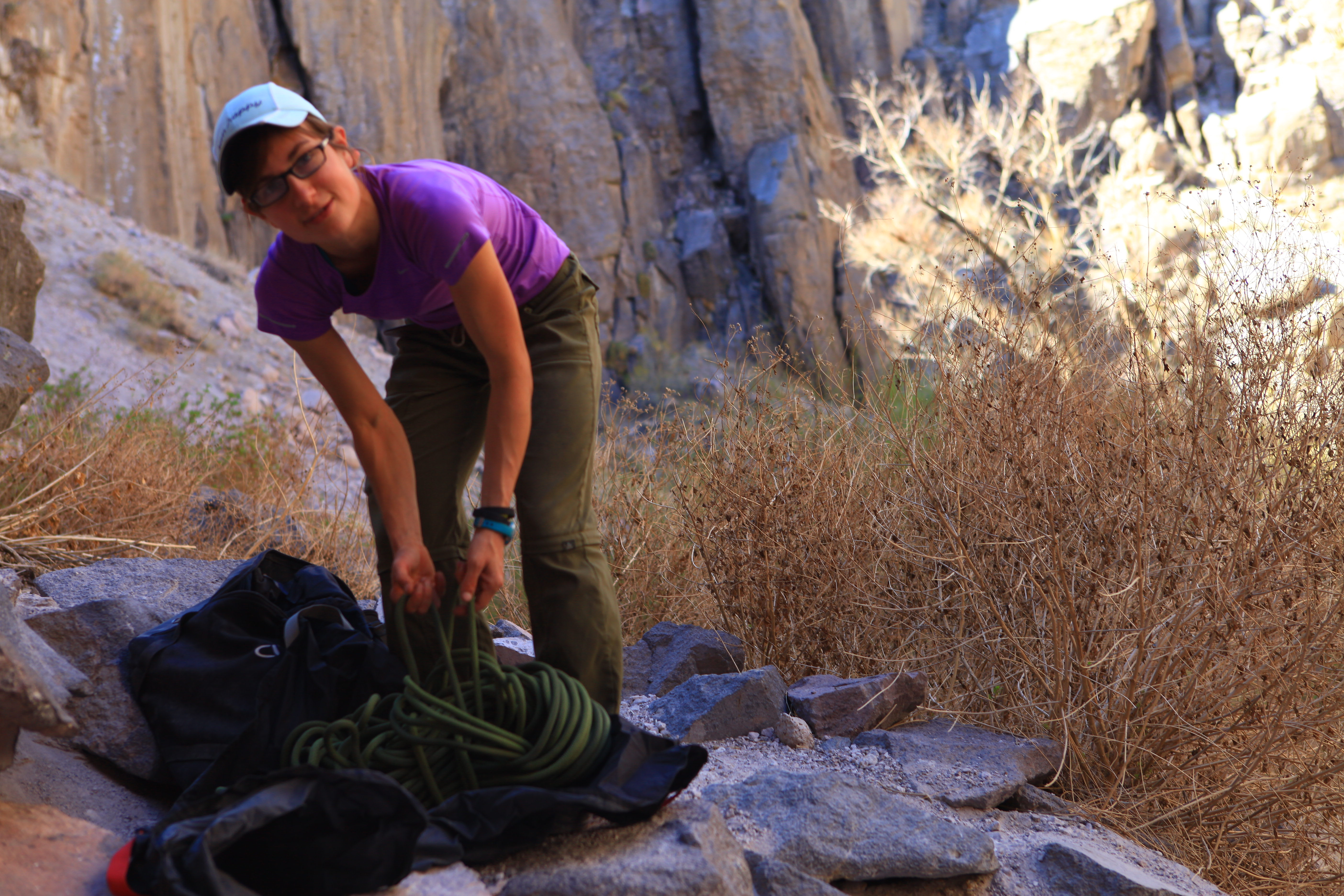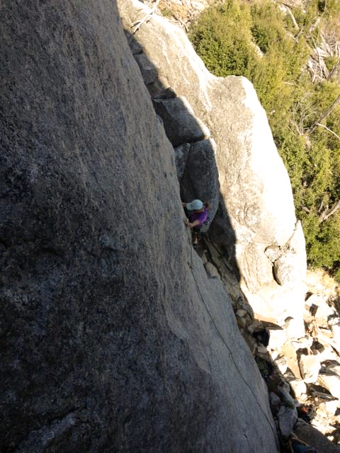 Usually, I don’t like to climb more than 3 days in a row outside. Preferably, I like to have 2 really hard days, followed by a rest day. But, due to delays etc. Gabriel and I were only climbing around 4 routes a day, 2 of which were warm-ups, and woke up every day with plenty of energy left. So, we just kept on climbing.. (not advisable for injury prevention, but evidently it’s okay every once in awhile). On our fourth day on we went to the Inner Gorge. On our way there, we definitely saw Peter Croft and talked to him for a bit, which was pretty cool. At the Inner Gorge we first went to the “Staying Powers” crag.