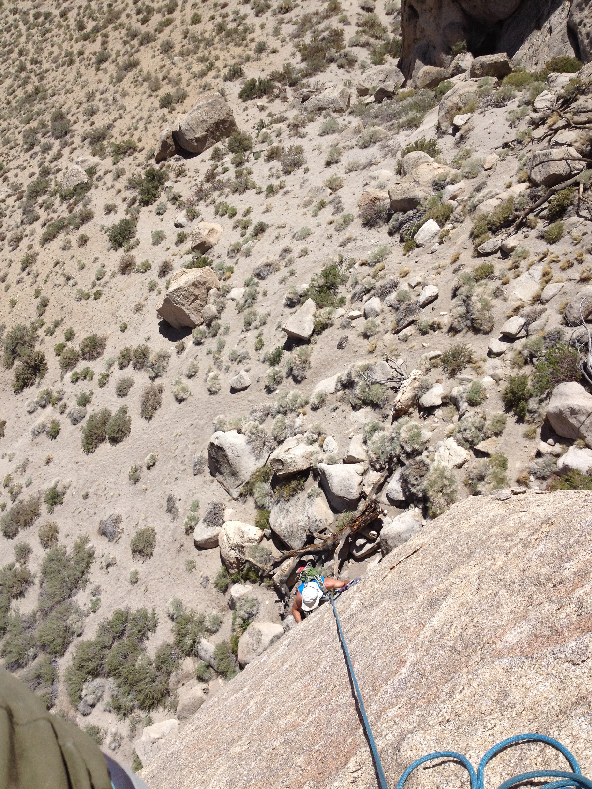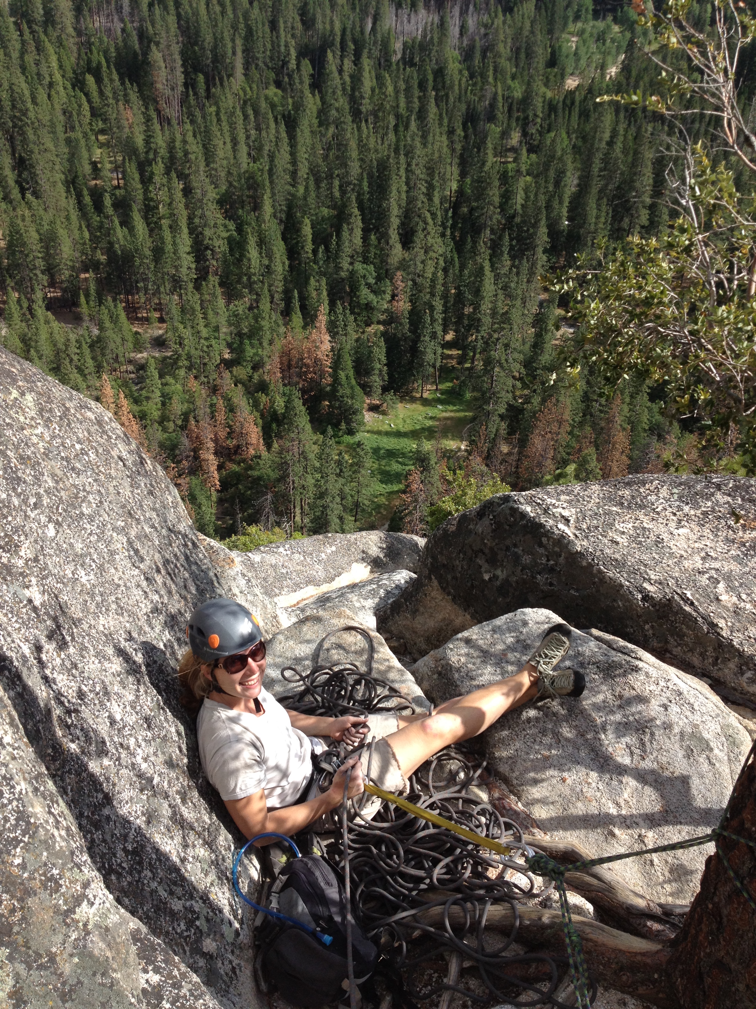 Colleen relaxing at a nice belay ledge on After Six, on Manure Pile ButtressBojan crushing Energizer (11b) near the Church Bowl. (I snuck in some sport climbing, even at the Valley)What trip is complete without some good old fashioned birdingHalf Dome, as seen from some belay ledge on After SixGranite BasinBojan following on Pitch 1 of Hairraiser Buttress on Granite BasinAt the top of Hairraiser Buttress, a 3 pitch 5.9 slab climb on the Granite Spire. Absolute gem.Another view of Granite Basin